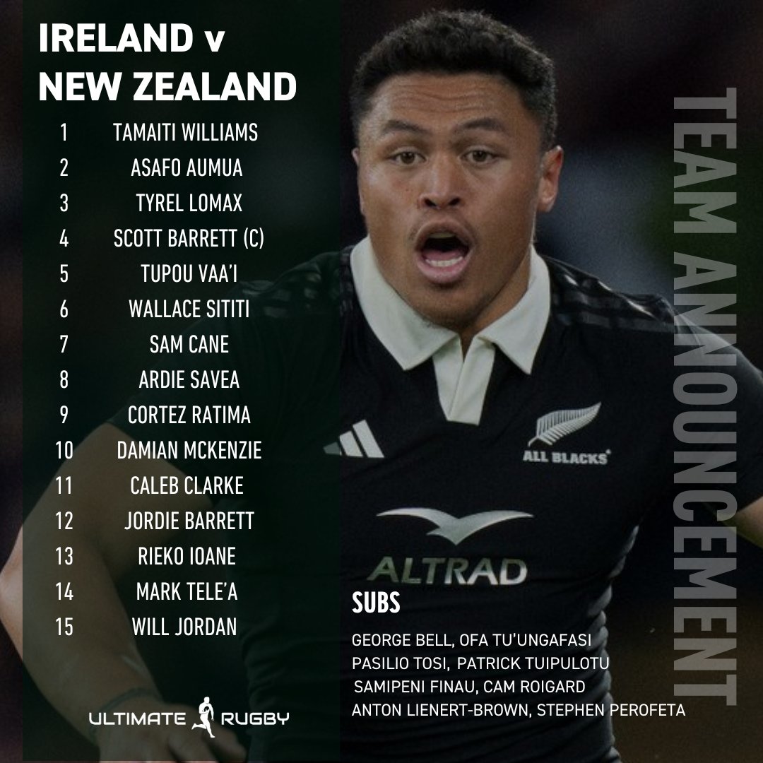 It is the first meeting between the two sides since the All Blacks clinched a 28-24 victory over Ireland in the 2023 World Cup quarter-finals, ending the latter's hopes of winning a second consecutive tournament.