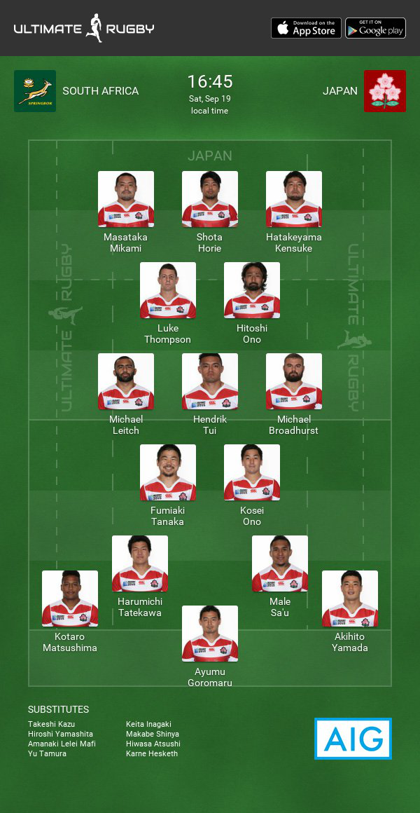 Jones has named six players in his starting XV that are aged 30 or older - Kensuke Hatakeyama, Luke Thompson, Hitoshi Ono, Fumiaki Tanaka, Craig Wing and Akihito Yamada.
