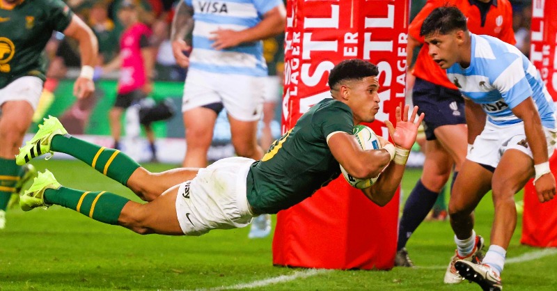 Argentina scored a try and were awarded a penalty try, while Pumas flyhalf Santiago Carreras kicked three penalty goals and converted a try by Santiago Chocobares, who scored from a rare mistake by Bok winger Cheslin Kolbe.