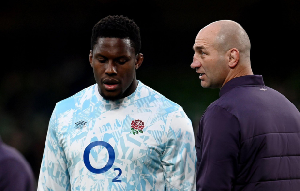 England head coach, Steve Borthwick, speaks with Topsy Ojo after victory at Allianz Stadium #ITVRugby | #GuinnessM6N | @EnglandRugby pic.twitter.com/oUzVxzEFDf