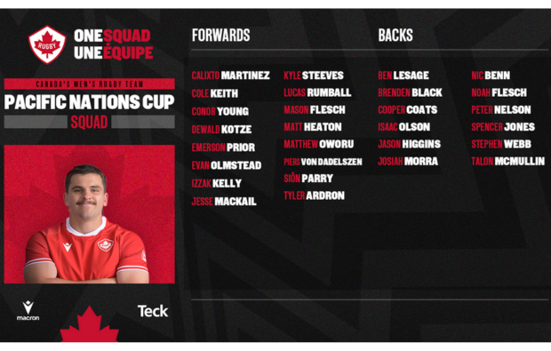 CANADA’S MEN’S RUGBY PACIFIC NATIONS CUP TOURNAMENT TEAM