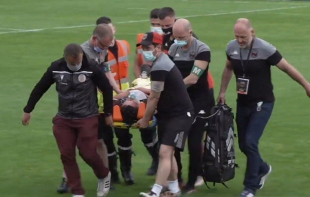 In the 73rd minute of the clash, the Narbonne scrum dominated Niçois' set-piece with lock James Lasis left injured on the ground.