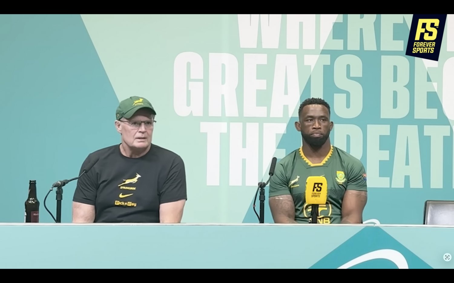 Rassie Erasmus and Siya Kolisi disccus the Springbok performance after their big win over Japan