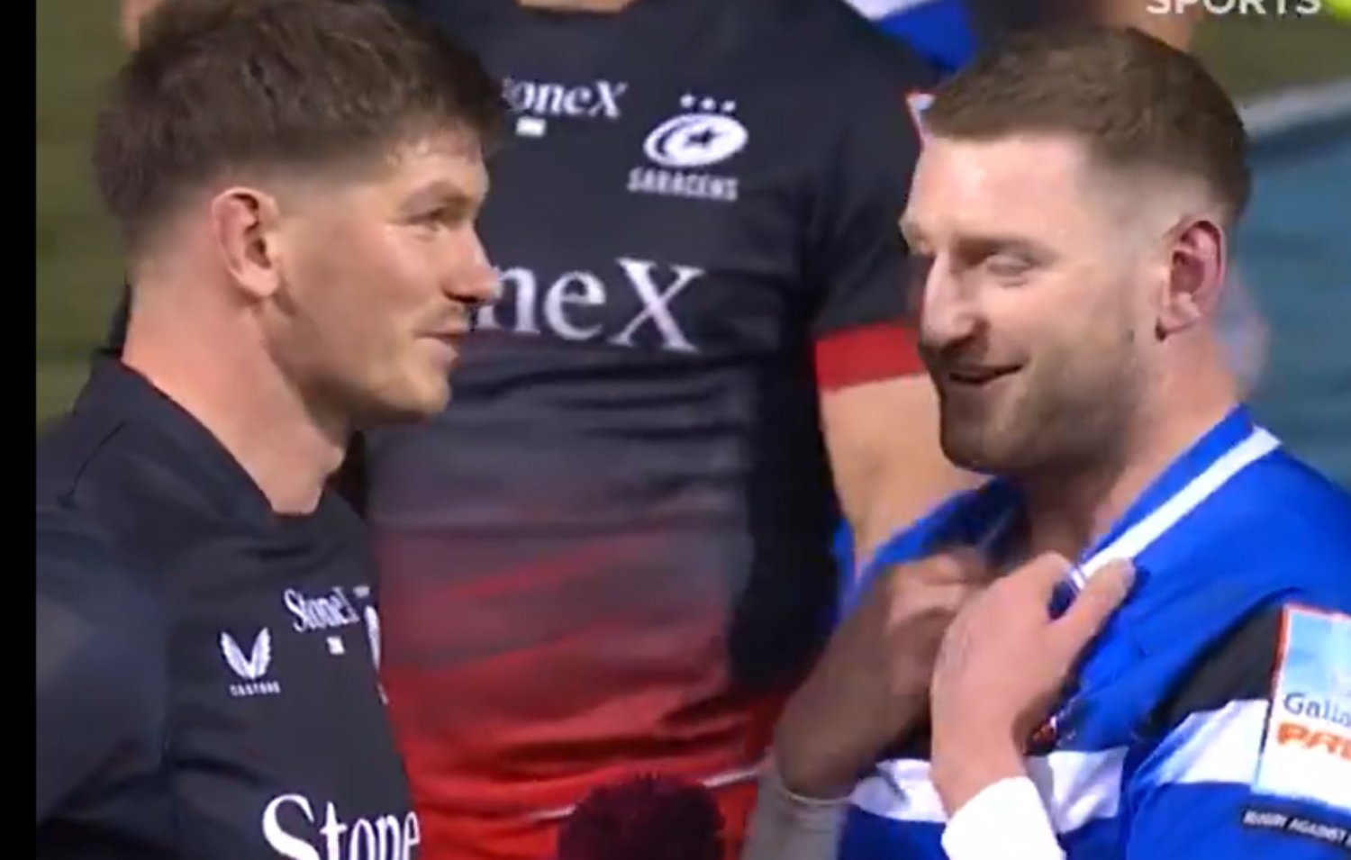 Watch as Faz and Finn share a moment after Bath take the victory against Saracens in a thrilling Prem encounter