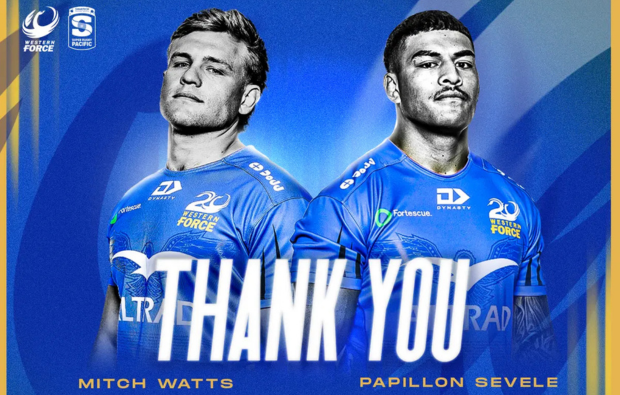 The Western Force thanks Mitch Watts and Papillon Sevele for their service to the Club, with the pair departing following the conclusion of 2025 Super Rugby AUS.