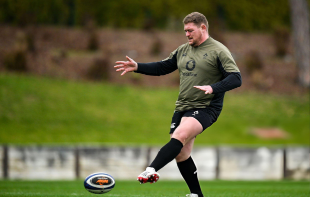 Tadhg Furlong was seen training on his own during Ireland’s captains run today, following his omission from the matchday 23 for tomorrow’s Six Nations opener against France. While the Campile native has been sidelined by a persistent calf injury, his individual work on the pitch in Paris follows comments from the coaching staff that he has "progressed really well" after taking part in earlier sessions in Portugal. Although he will not feature in tomorrow's match at the Stade de France, his solo training suggests he is continuing his rehabilitation process as he aims for a potential return in Round 2. See below: