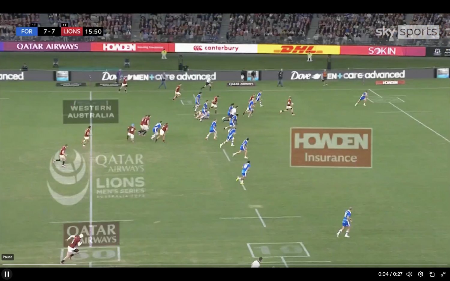 Henry Pollock, the polarising England star, has an eye for a gap and pace to burn. He showed his valuable skills in picking a gap and bursting away for the Lions against the Force. He was dragged down short of the line and showed great patience in waiting for the right moment to pop a pass off the deck.