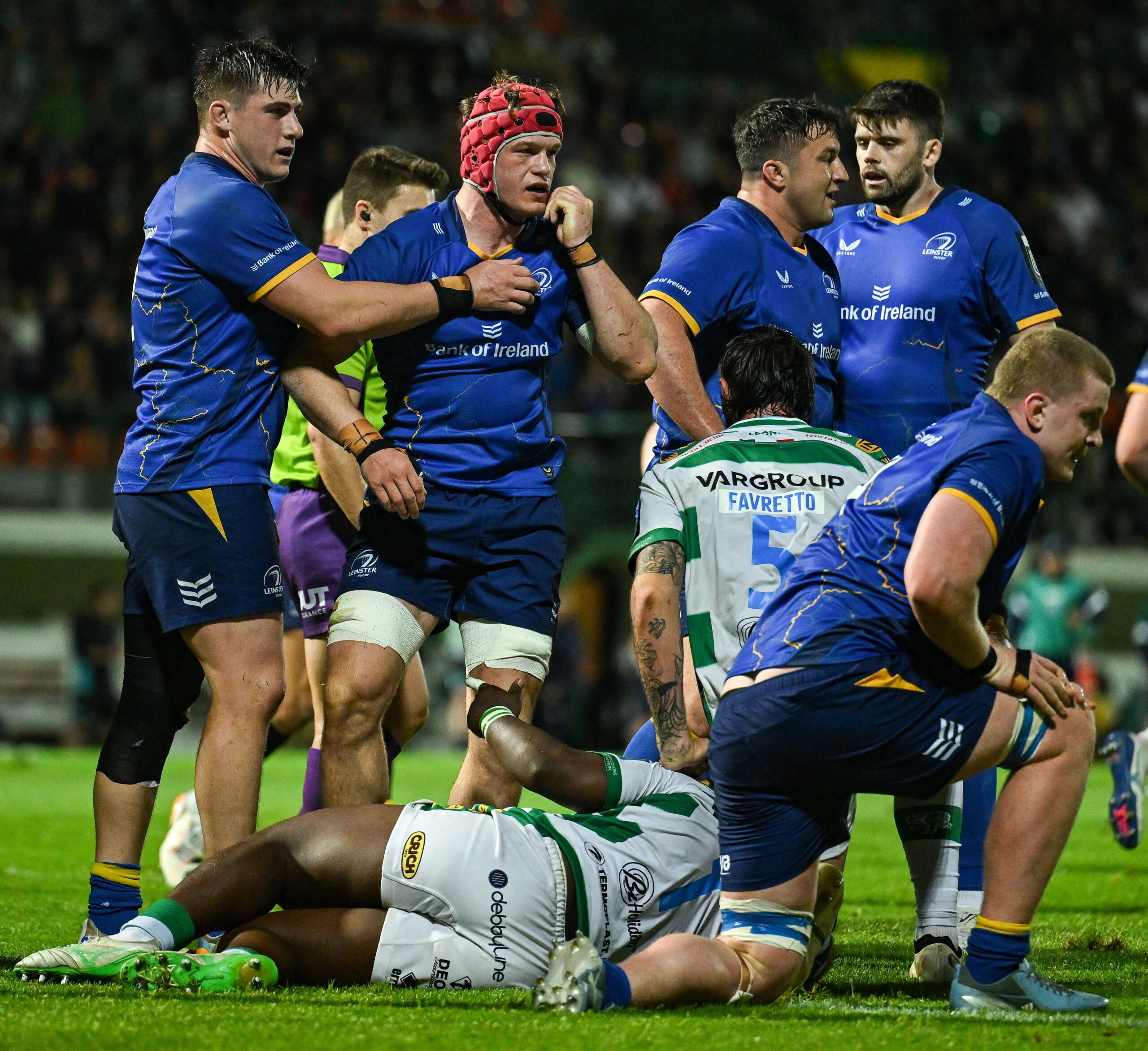 Benetton were pushing the pace, Fekitoa’s offload and Gallagher’s penalty to touch taking them to a lineout inside the Leinster 22.