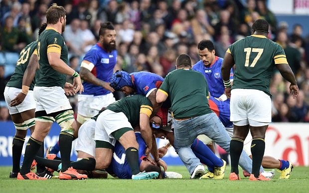 Man runs on the pitch during South Africa v Samoa and annoys everybody