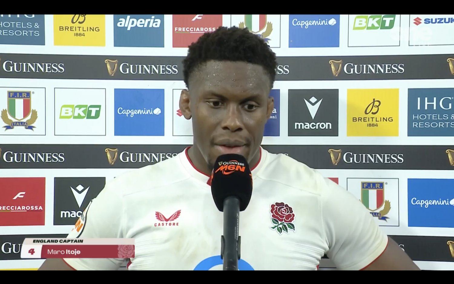 Maro Itoje speaks following the loss to Italy