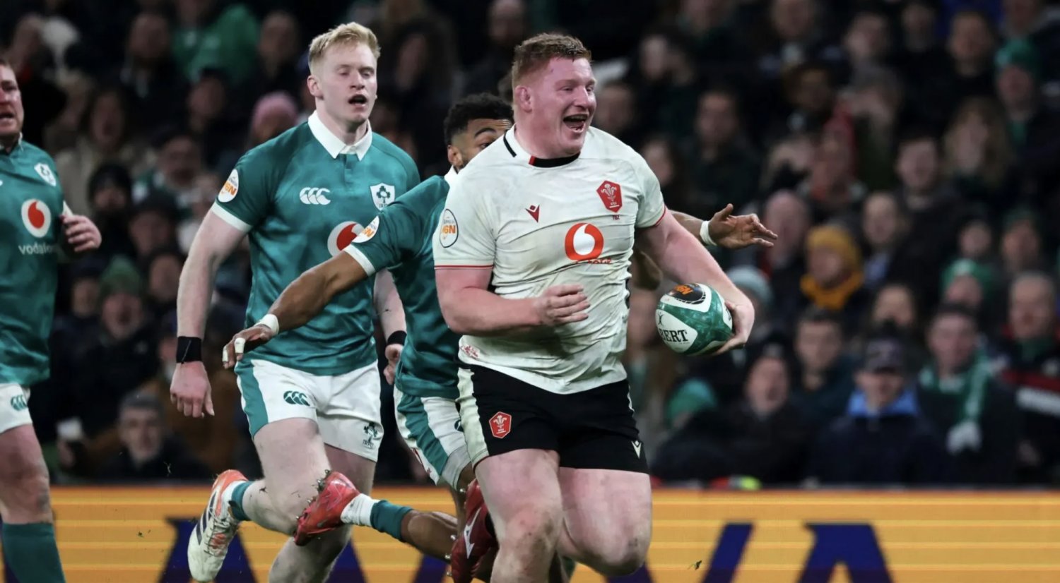 Rhys Carre continues with his fine form in the Six Nations as he puts in great performance against Ireland at the Aviva Stadium. Carre often made his way to the fringes and was used with ball in hand out wide, one of these runs resulted in one of the best prop tries ever seen in the game.