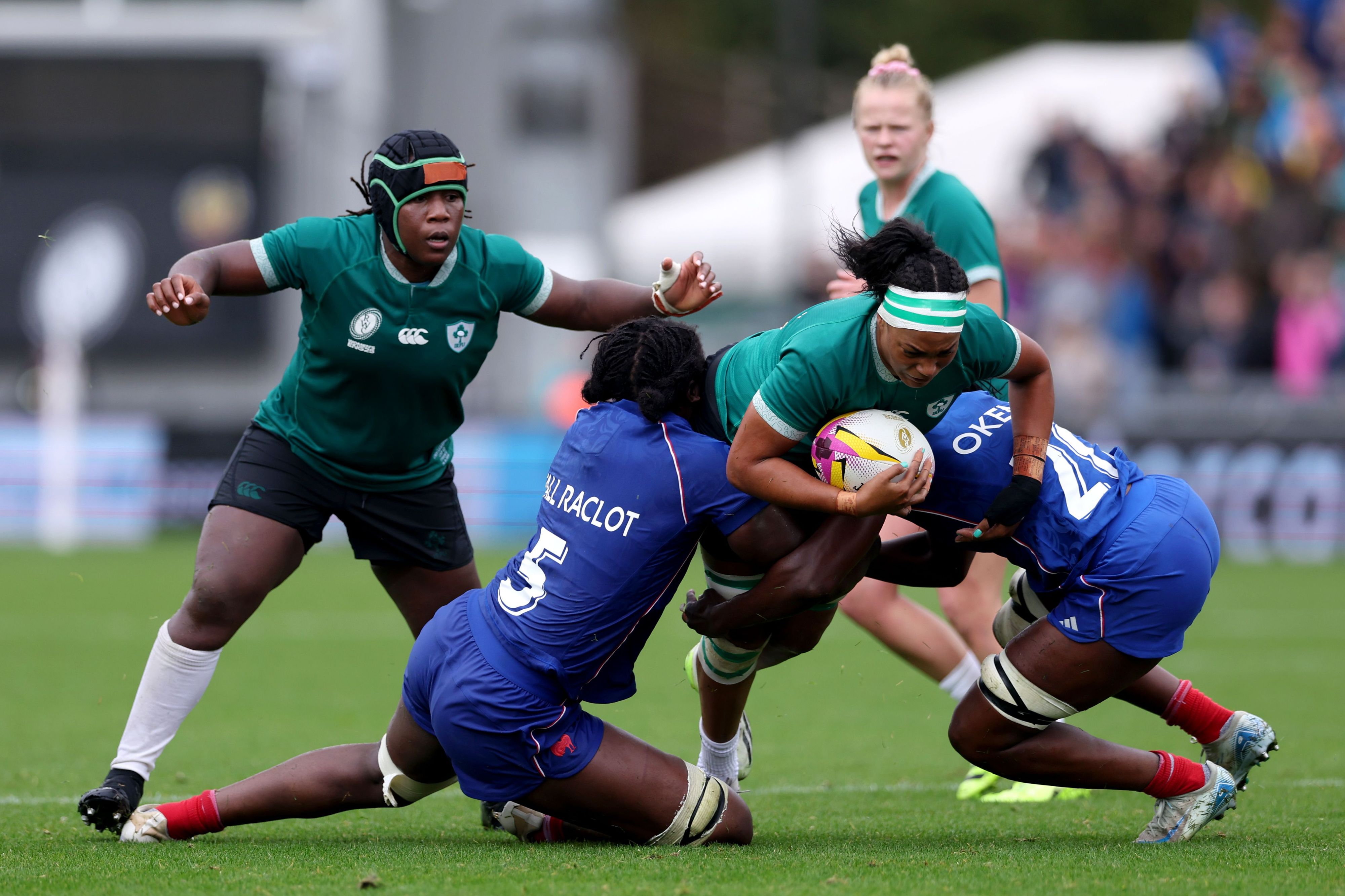 RWC2025 | Captain Sam Monaghan, head coach Scott Bemand and Eve Higgins react after Ireland lose to France