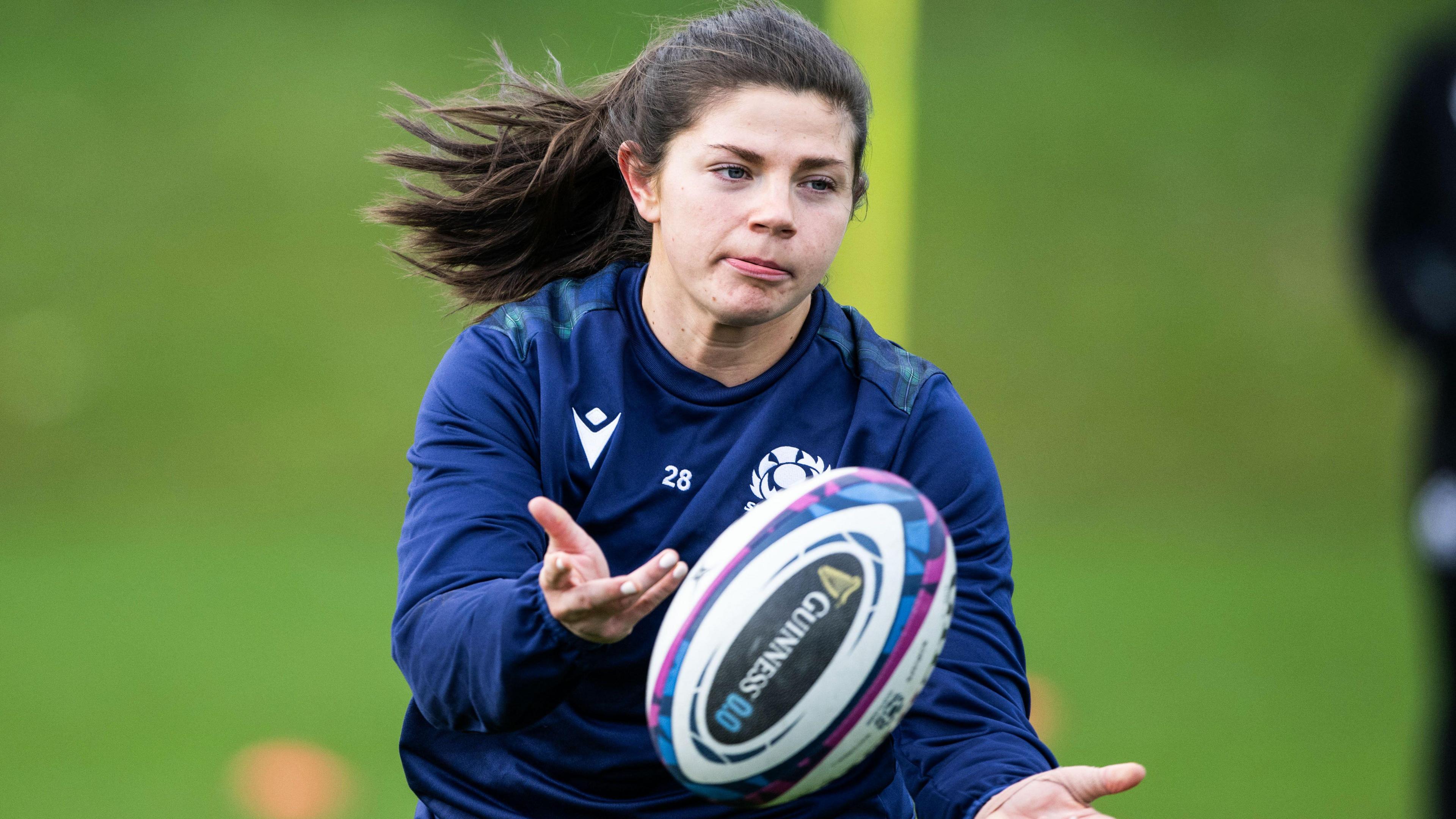Head coach Bryan Easson, captain Rachel Malcolm, Francesca McGhie (pictured) and Lisa Thomson speak after Scotland announced their matchday 23 to face England in the quarter-finals at Ashton Gate Stadium on Sunday.