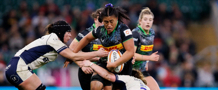 Ruahei Demant began testing Quins with her boot in the second-half and in the 54th minute, after she pinned the West Londoners back with another touch-finder to the corner, an overthrown lineout from the hosts saw Amy Dale dot down and a conversion from Keira Bevan made the scores 26-12.
