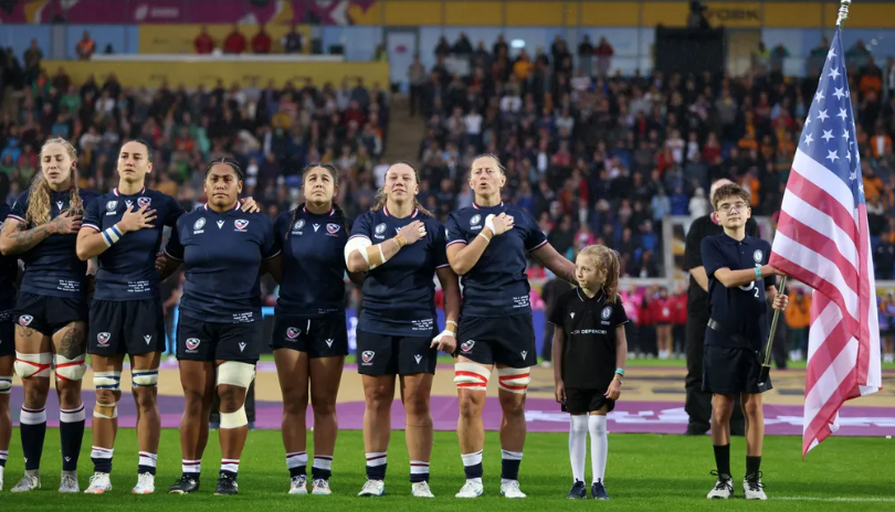 USA head coach Sione Fukofuka, Mastercard Player of the Match Freda Tafuna and captain Kate Zackary reflect on the thrilling 31-31 draw against Australia in Pool A at York Community Stadium on Saturday.
