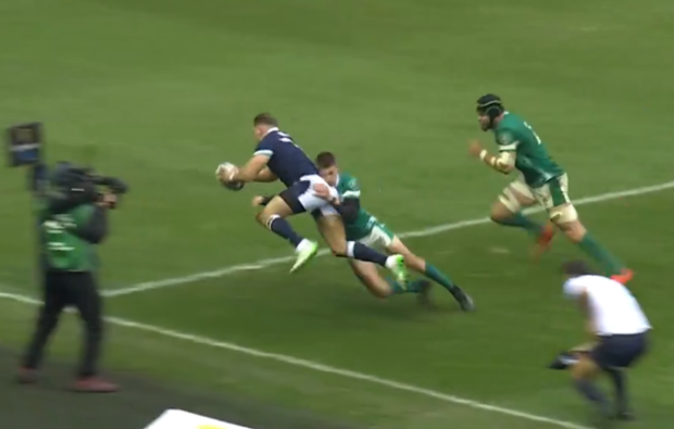 After being sent t the sin bin in the 12th Minute, Scotland winger returned from the bin to score the home teams first points of the game with an immaculate finish from an exceptional offload from Stafford Mcdowell. See below: