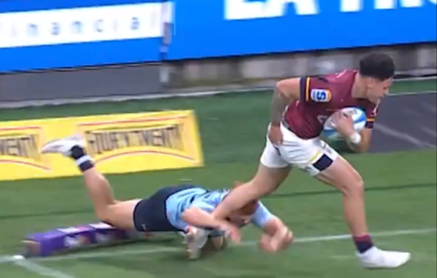 The second fixture of the 2025 Super Rugby season kicked off between the star-studded Waratahs side and the visiting Highlanders from New Zealand. The Highlanders were first to get on the board through a Caleb Tangitau try. See below: