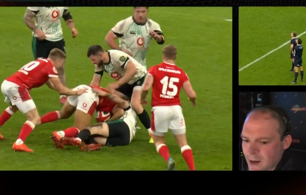 Ireland centre Gary Ringrose was shown red after his yellow card was upgraded to a red card by the TMO. See below
