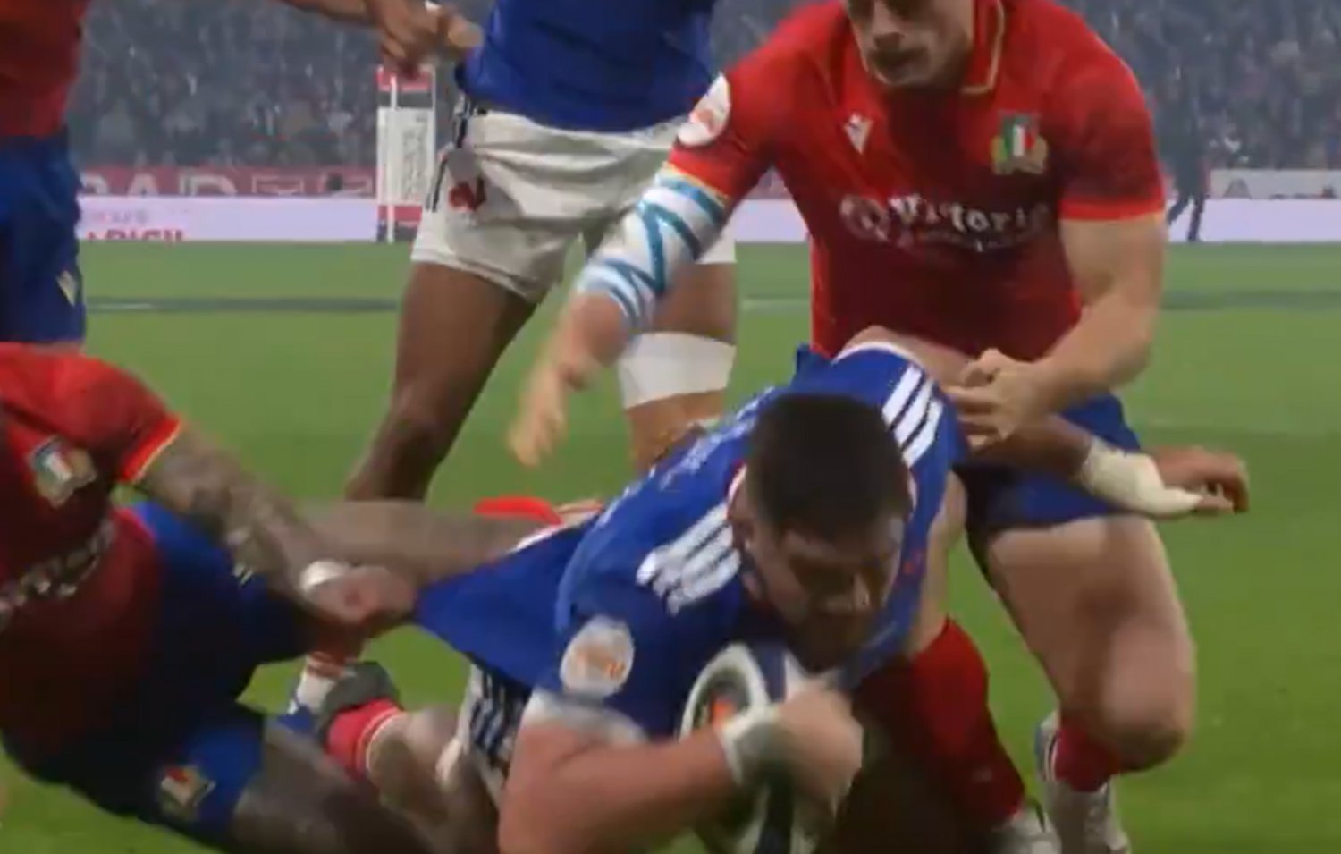 Watch as Emmanuel Meafou powers over for France's second try