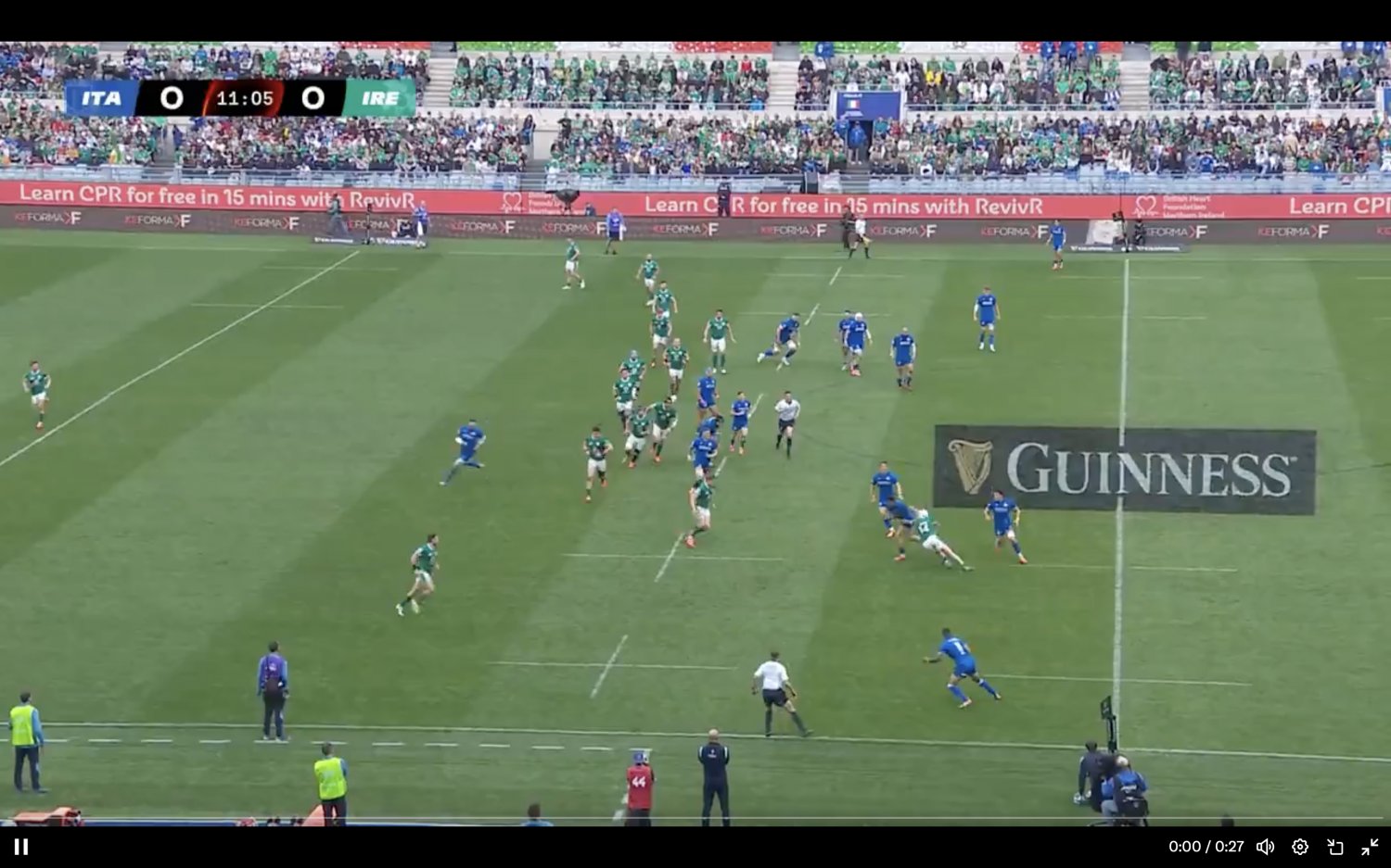 Menoncello adjusts to take a good line and betters it with his brilliant pop to Garbisi. Garbisi then puts in a perfect grubber ahead and Ioane chases it and scores