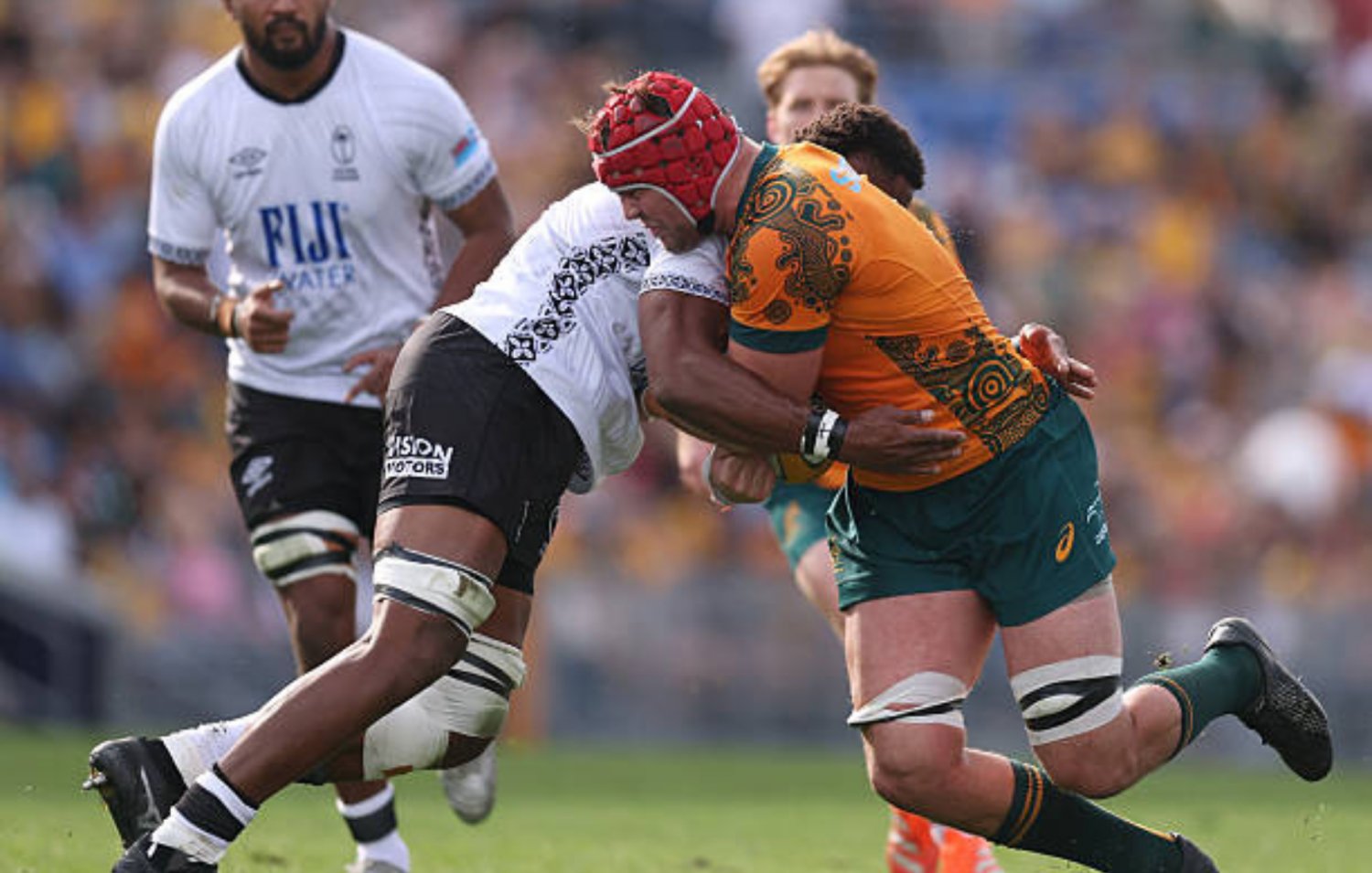 Dave Porecki and Fraser McReight put Australia ahead, but Fiji debutant Salesi Rayasi reduced the arrears.