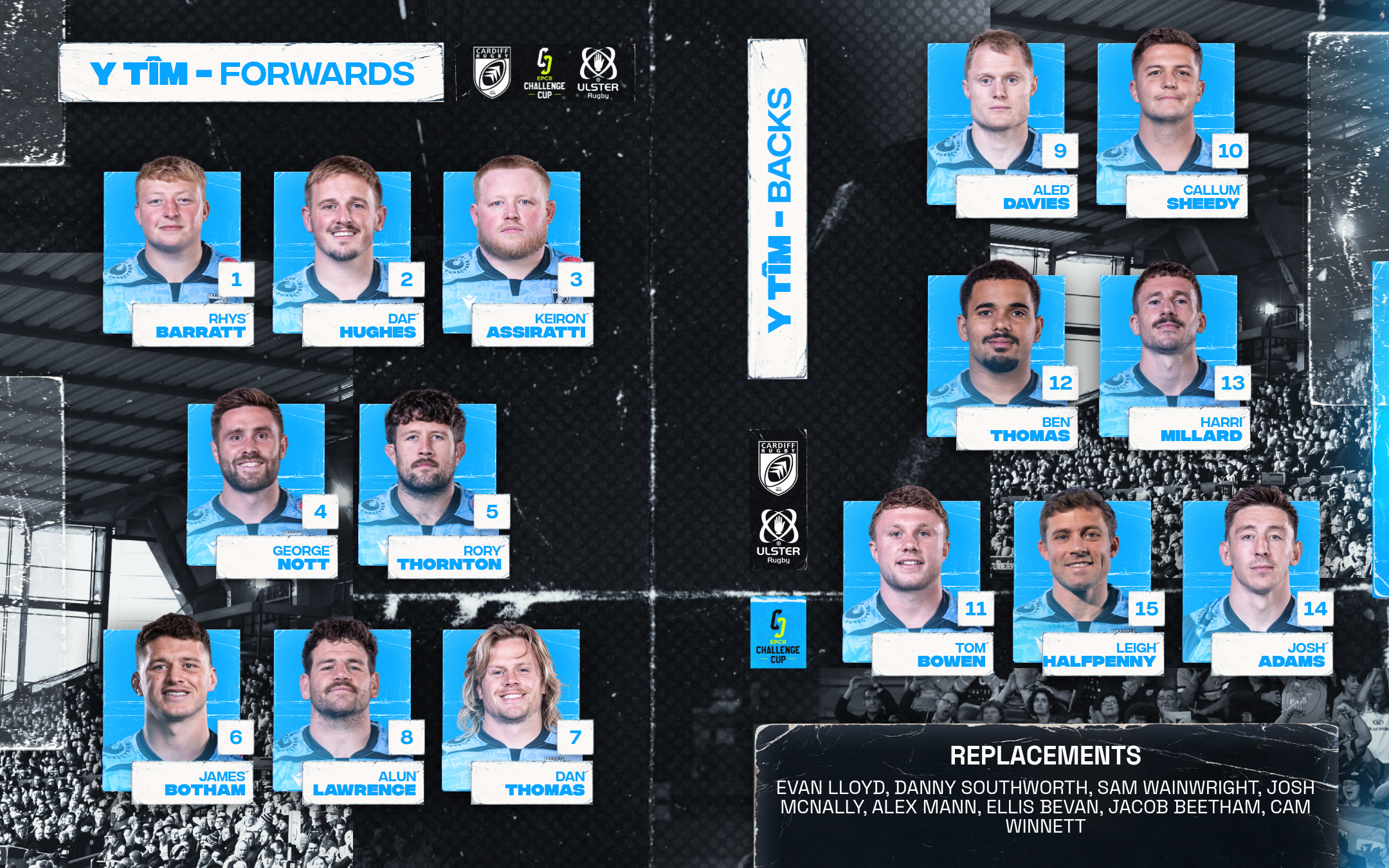 Cardiff Rugby team to face Ulster Rugby on Saturday, December 13 (8pm):
