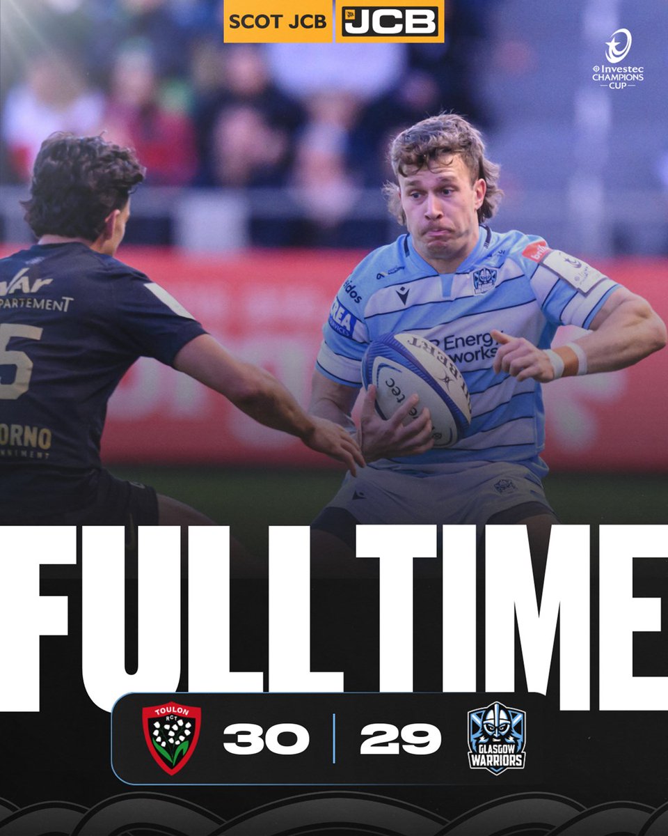 Afshar snipe and he gets manhandled by Fainga’anuku and sent into touch. From that line out and exit Toulon pressure Glasgow and win a penalty on half way. They go on to kick the penalty