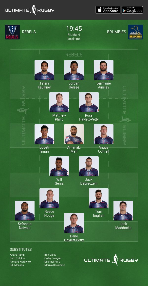 The Rebels are currently on top of the Australian conference having won their opening two matches with bonus point victories. While the Brumbies have been unconvincing having needed a late surge to beat the Sunwolves and going down to the Reds in round 3.
