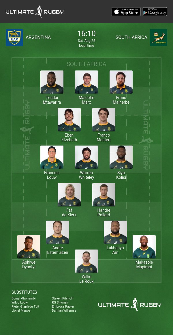 Mostert was rested for last weekend’s Springbok victory over the Pumas in Durban following his heavy workload so far this year. He comes back into the starting team for Saturday’s Test and will form a second-row partnership with Eben Etzebeth, which sees Pieter-Steph du Toit moving to the bench as cover.